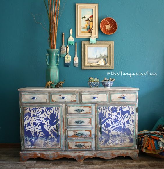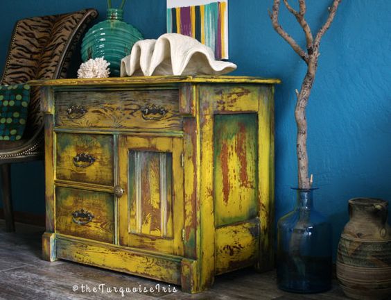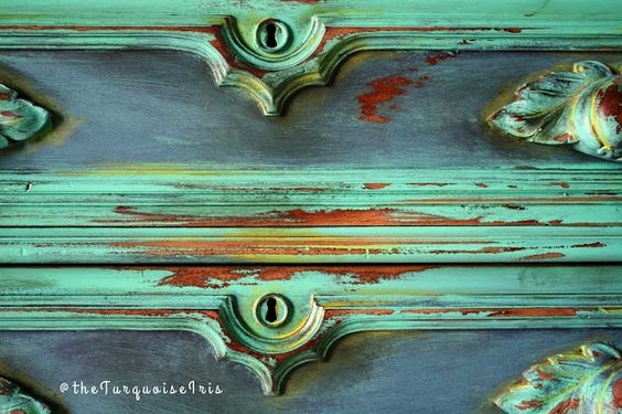 Tak właśnie określiłabym dzieła sztuki, które wychodzą spod ręki The Turquoise Iris. Łączy ona wiele technik, natomiast finalnie jej meble są zdecydowanie w stylu vintage, z efektem postarzenia. Spójrzcie: